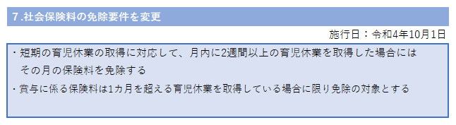 令和4年10月から | 社会保険料の免除要件を変更 |