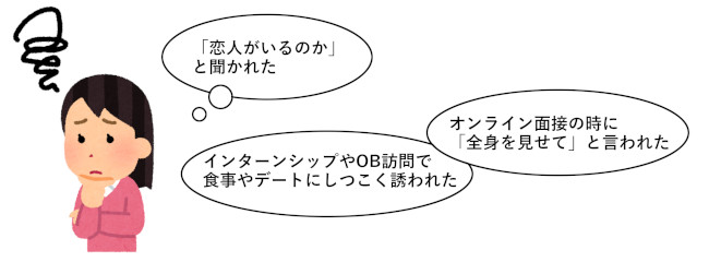なお、女子学生だけでなく、男子学生に対する性的な冗談やからかいなども就活セクハラに該当します。