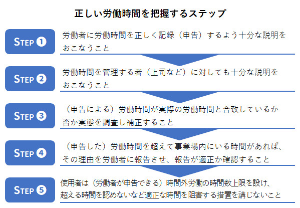 ガイドラインでは自己申告制に「不適切な運用」があるためにこのような取り組みが必要だとしていますが、タイムカードなどを用いる場合も、正しい時間を把握するために必要であることは同様です。