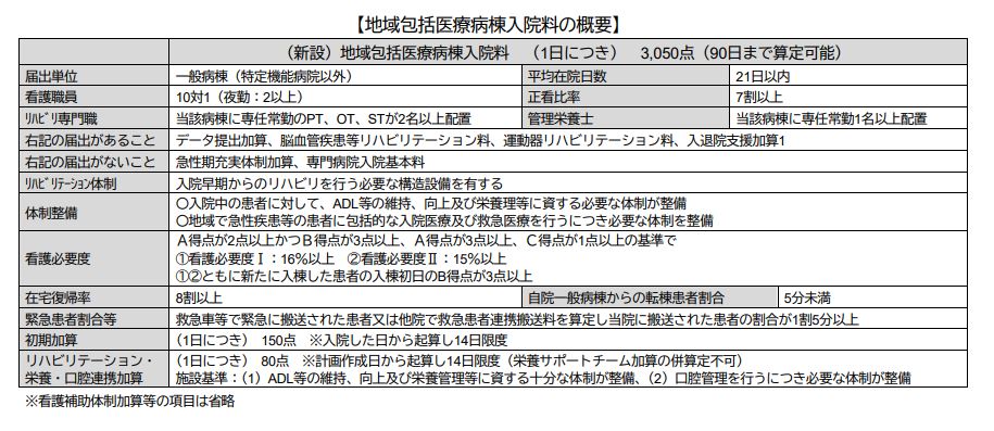 2月14日の答申で2024年度診療報酬改定の点数と「注」の部分が明らかになった。細かな施設基準等の告示・通知は3月5日予定なので、現時点はまだ詳細は不明である。今回は昨年12月下旬の中医協総会で突然に登場し、一気に新入院料創設となった「地域包括医療病棟入院料」について、現在の答申内容に基づいて俯瞰してみたい。