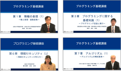 講師全員がプログラミング検定の創設に携わった日本商工会議所のプログラミング検定研究会メンバーです。専門分野を担当講師が講義資料を使いながらわかりやすく解説します。動画は繰り返し視聴が可能です。