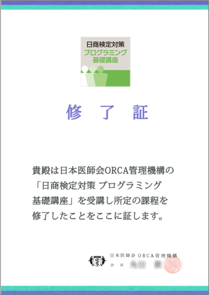 ※ 日商プログラミング検定の修了証とは別のものです。また、検定試験の合格を保証するものではありません。