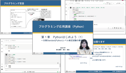 本講座は、日本商工会議所主催「日商プログラミング検定STANDARDレベル(Python)」の合格を目指しながら、実務でも役立つプログラミングの基礎を体系的に学習できます。